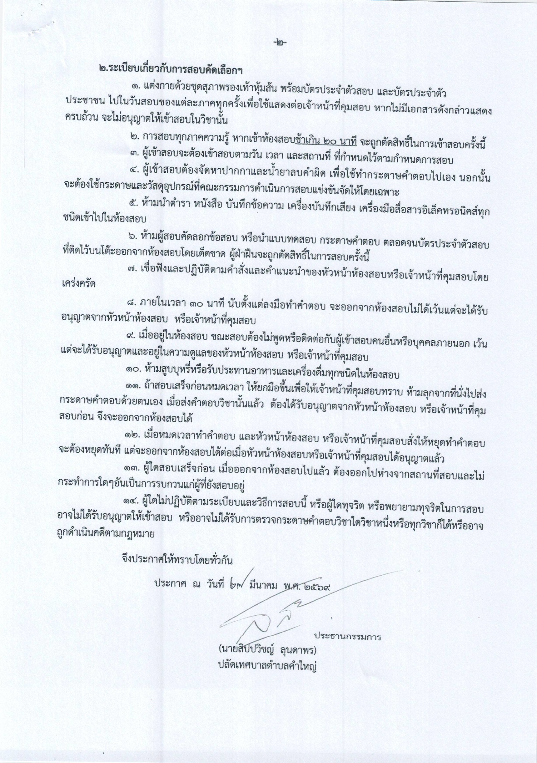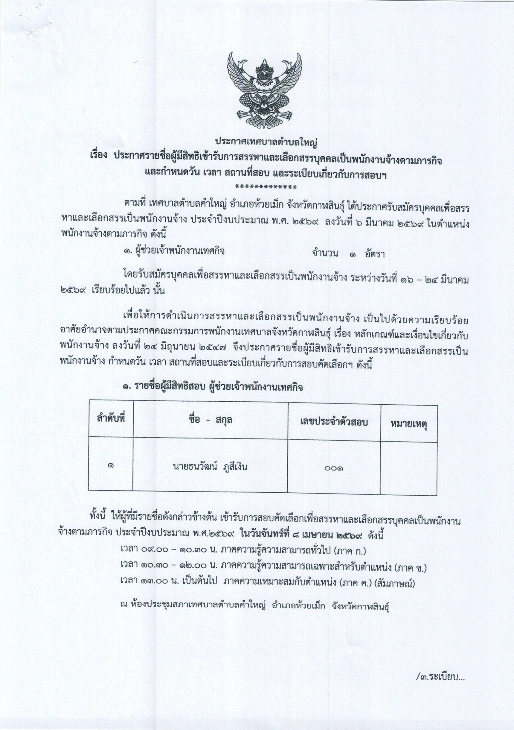 ประกาศรายชื่อผู้มีสิทธิเข้ารับการสรรหาและเลือกสรรบุคคลเป็นพนักงานจ้างตามภารกิจ และกำหนดวัน เวลา สถานที่สอบ และระเบียบเกี่ยวกับการสอบฯ