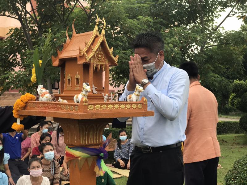 เทศบาลตำบลคำใหญ่ จัดทำพิธีไหว้ บวงทรวงบูชาตั้งศาลพระภูมิและศาลเจ้าที่ เอาฤกษ์ชัยเพื่อความเป็นศิริมงคลแก่เจ้าหน้าที่เทศบาลตำบลคำใหญ่