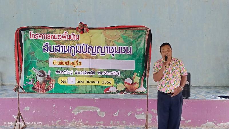 ร่วมเปิดโครงการหมอพื้นบ้าน สืบสานปัญญาชุมชน ปี 2566 ตามแนวทางพระราชดำริด้านสาธารณสุขชุมชนหมู่ 3 บ้าน ชัยศรี พร้อมมีสมาชิกสภาเทศบาล ผู้นำชุมชน และคณะผู้สูงอายุจากชุมชนหมู่ 3 เข้าร่วมโครงการ ณ ศาลาประชาคมบ้านชัยศรี หมู่ 3 ตำบลคำใหญ่ อำเภอห้วยเม็ก จังหวัด กาฬสินธุ์
