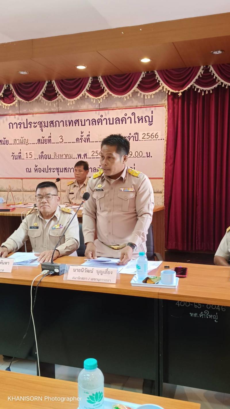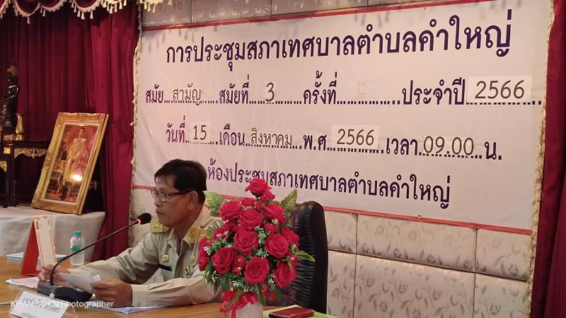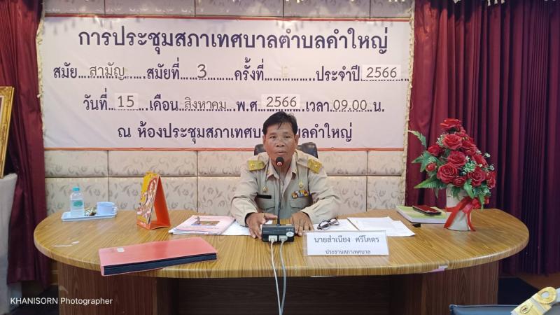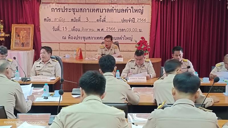 15 สิงหาคม 2566 เวลา 09.00 น. เทศบาลตำบลคำใหญ่ดำเนินการประชุมสภาเทศบาลตำบลคำใหญ่ ตามระเบียบวาระการประชุมสภาเทศบาลตำบลคำใหญ่ สมัยสามัญ สมัยที่ 3 ประจำปี พ.ศ 2566
