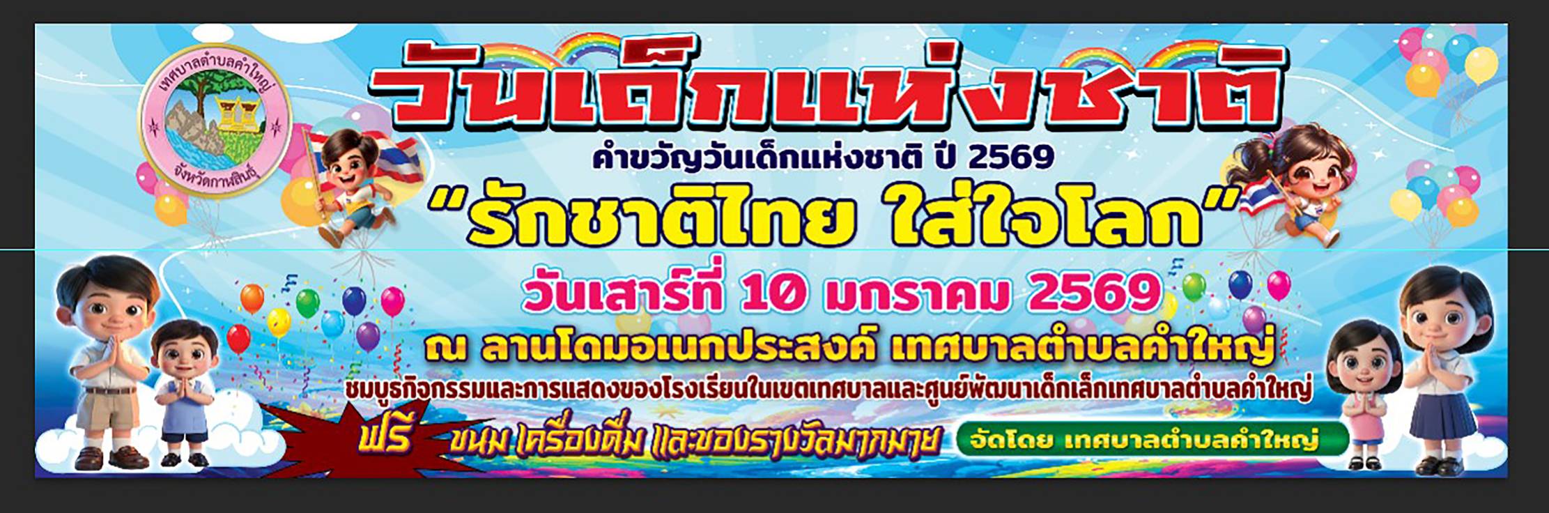 วันเด็กแห่งชาติ คำขวัญวันเด็กแห่งชาติ ปี 2569 "รักชาติไทย ใส่ใจโลก" วันเสาร์ที่ 10 มกราคม 2569