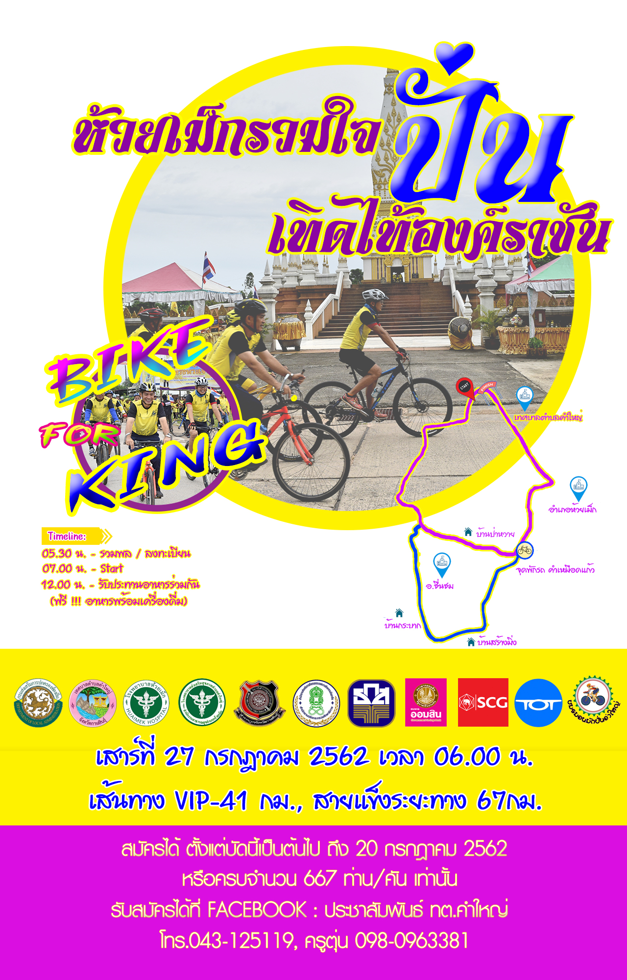 เทศบาลตำบลคำใหญ่...ขอเชิญชวน...ร่วมกิจกรรมBike for King "ห้วยเม็กรวมใจ ปั่นเทิดไท้องค์ราชัน ๑๐"ในวันเสาร์ ที่๒๗ กรกฎาคม๒ ๕๖๒ โดยเทศบาลตำบลคำใหญ่ อำเภ